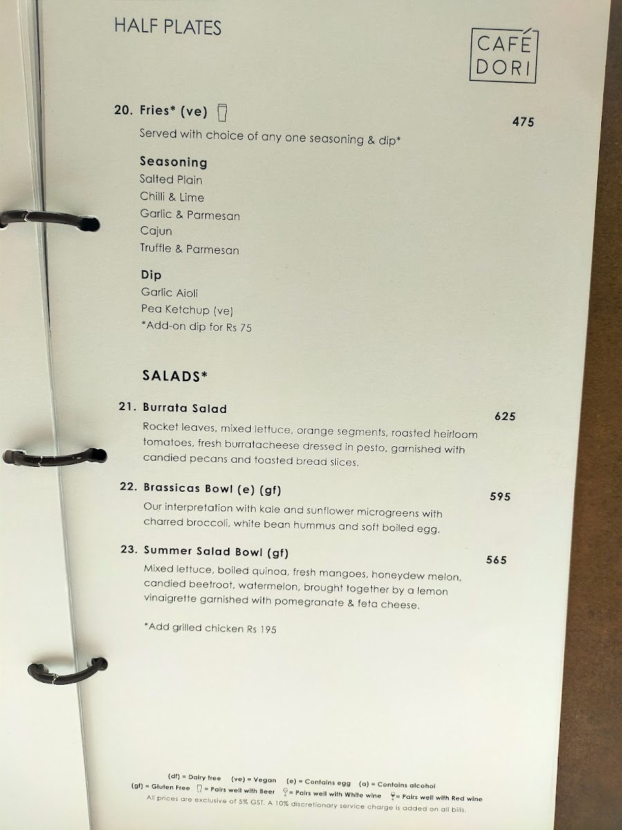 Located in the vibrant Grand View High Street, Cafe Dori Gurgaon presents a menu that is a delightful fusion of flavors, designed to cater to diverse palates. The offerings include a variety of full plates such as the savory Aglio Olio Linguine and creamy Cauliflower Gnocchi, showcasing an Italian twist on modern cuisine.